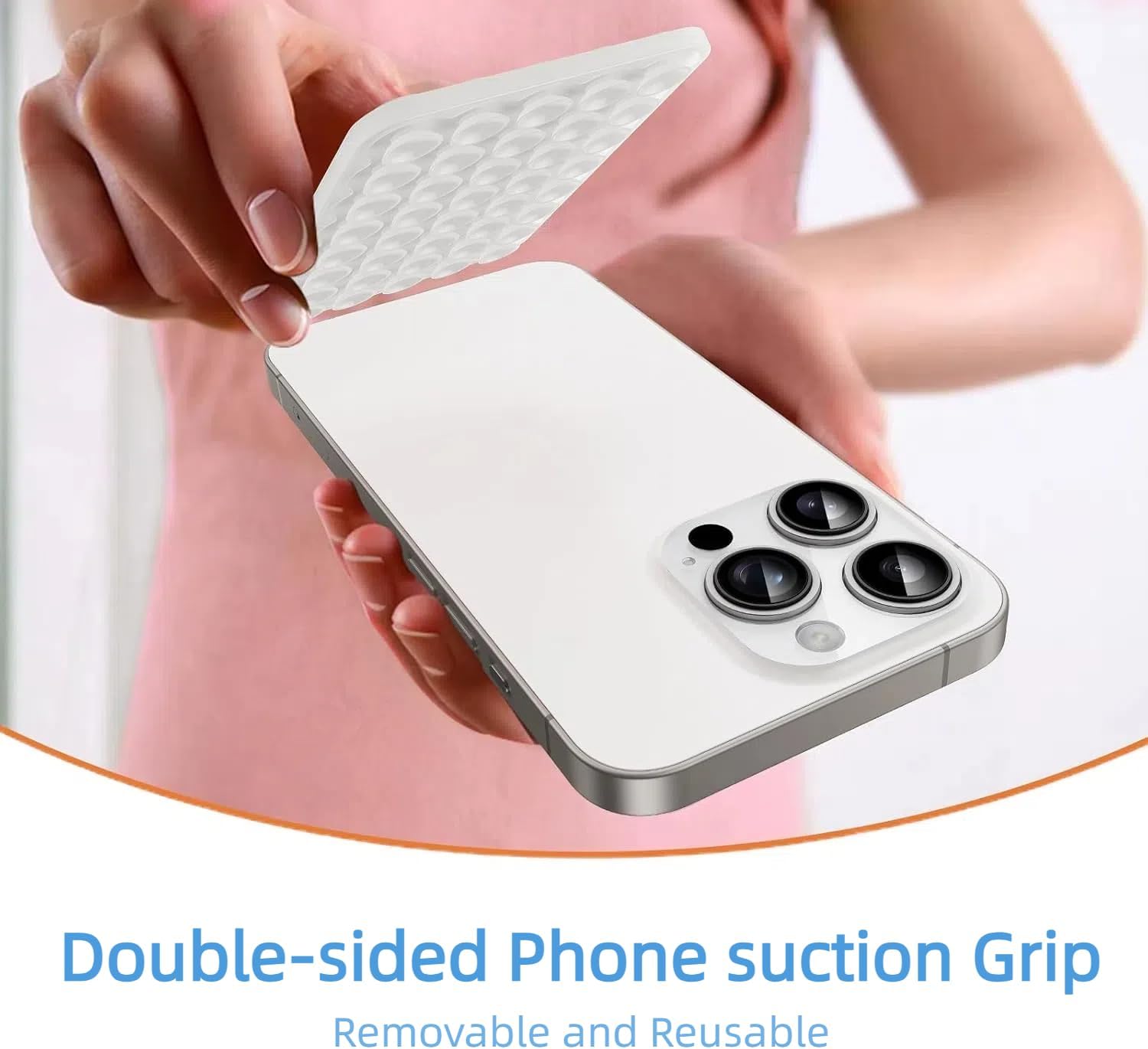 2-Pack Silicone Suction Cup Phone Holder (Black & White) gives you strong, reusable grip for hands-free selfies, reels, and desk viewing. The double-sided suction design sticks firmly yet removes cleanly, making it ideal for content creators or daily use.